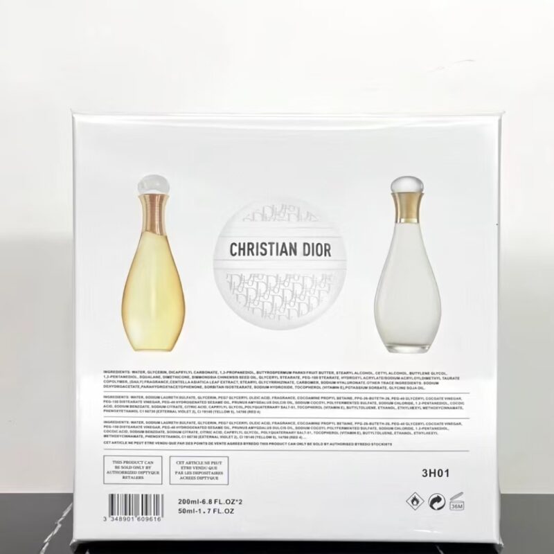 Contains: J’adore body lotion 200ml, J’adore shower gel 200ml, flower cream 50ml.