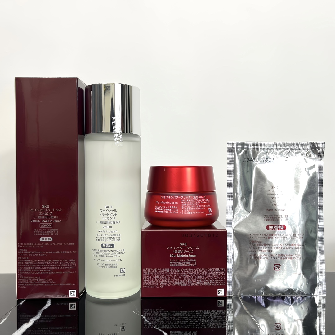 Full size 230ML fairy water + 80g big red bottle facial cream. Medium sample: 20g facial cleanser + 30ML clear lotion + 30ML fairy water + 2.5g eye cream + 15g face cream + one piece of facial mask. After using sk2, you will know what it means to get what you pay for. The all-round sk2 can keep your beauty. If you want to buy fairy water, this is the most cost-effective option.