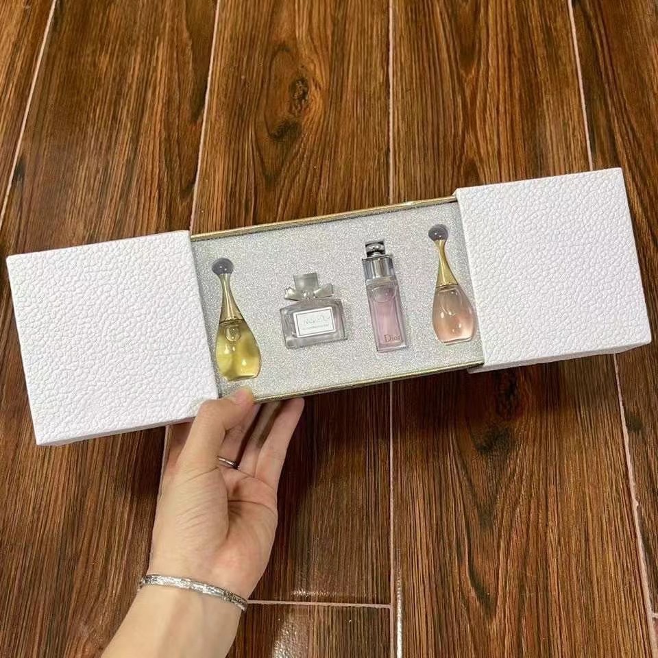 Dior Perfume Sample Set of Four Silver Drawer Box